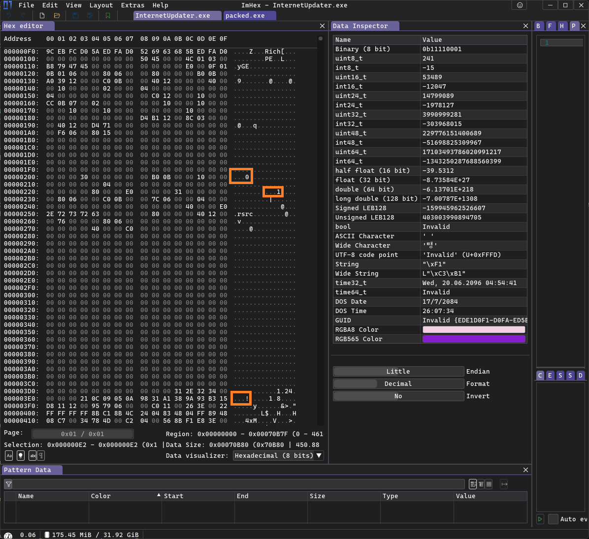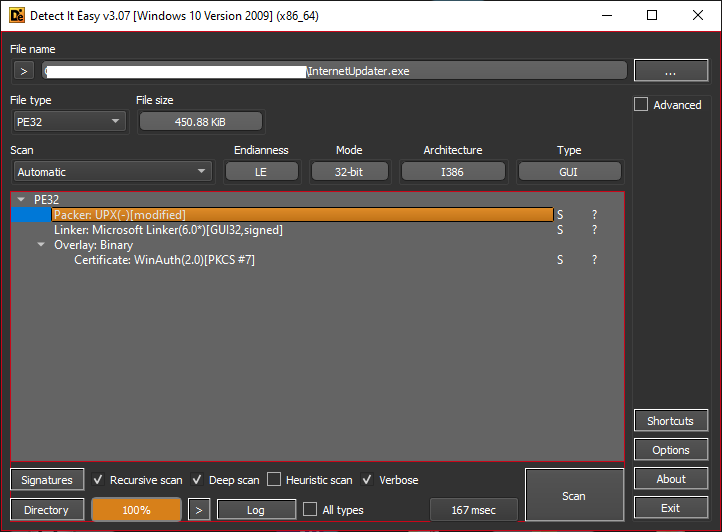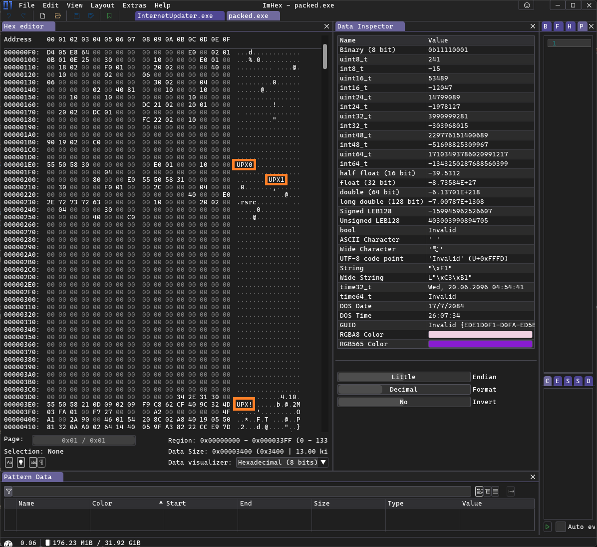 As a bonus, I also wanted to check out the InternetUpdater.exe. It says that it’s packed with UPX: